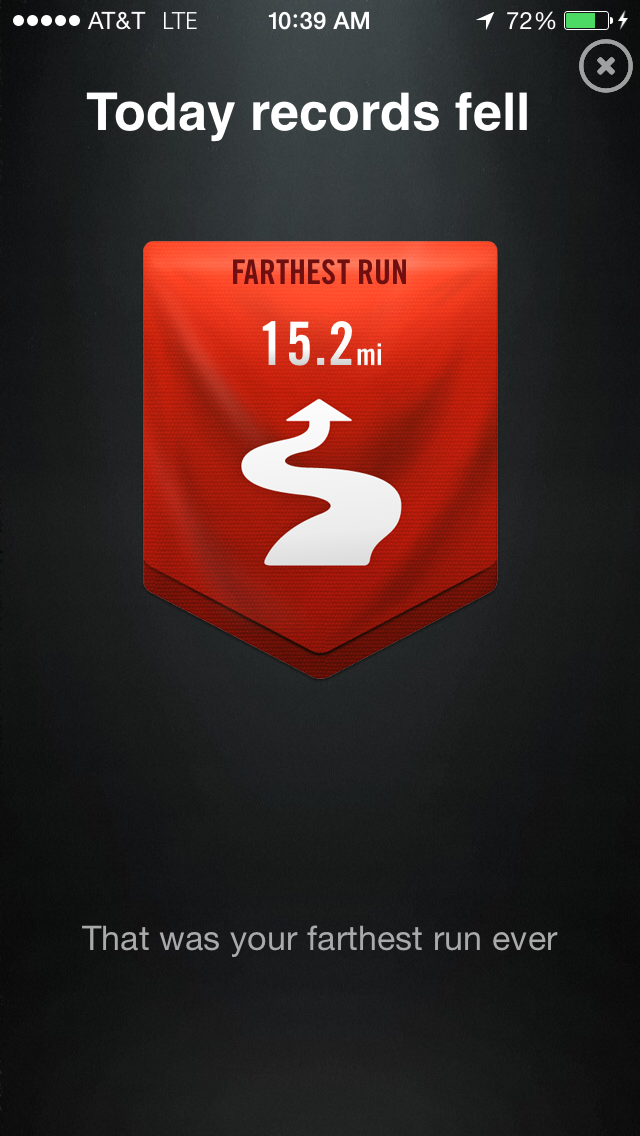 Here is proof that the Nike Plus Run app sometimes has a mind of its own. There is no way I ran a 5 minute mile during Saturday’s long run! Seriously, I don’t know which satellite was tracking me on this run but I certainly hope it is not one used for national security or to track the space station because it is wonky.