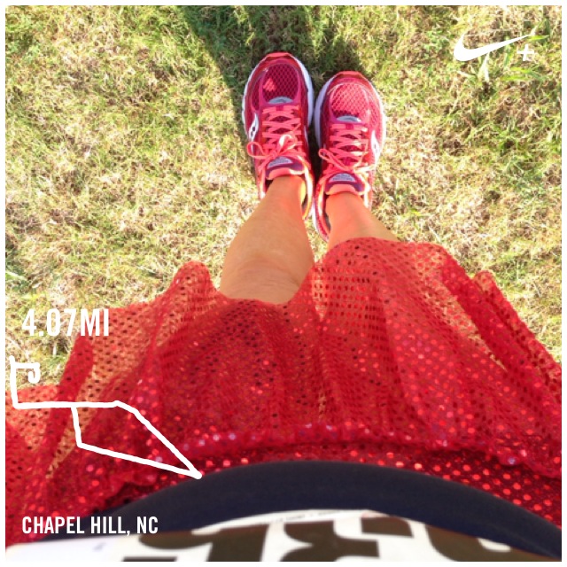 This week’s “long” run was only 8 miles (that did not stop me from watching football all day in my sweatpants). It felt great for the first 4 miles. Sara and I felt like we were flying. I had to slow down for the last 4 because I am my own worst enemy when it comes to pacing. Speed is my downfall. It ends up in more aches and pains than if I take it easy. I can run 20 miles at a slow pace and suffer few consequences the next day or I can run 5 miles at a fast pace and not be able to walk for 3 days! The choice is mine. I hit somewhere in the middle on Saturday. I have a stiff ITB. This makes me sad because Smruti fixed my soleus on Thursday and I was pain free for a few days.