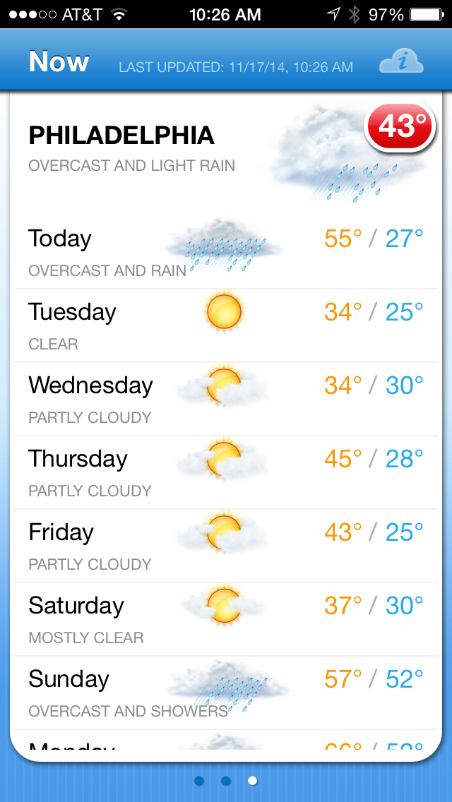 So, what did I do with all my free time? I finished my playlist. I’ll post it later this week. I obsessed over the weather in Philly. It currently looks like this: