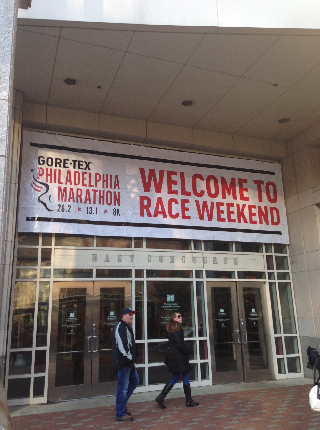 I lived both figuratively and literally. It was an amazing experience and, yes, I am going to run another marathon. First, I want redemption from the time my miserable IT band cost me. Second, I want to be there for Sissy and Heather to get to the finish of their first marathon. If you run long distances, I think you should run a marathon. There is no way to describe what it feels like. I’m getting ahead of myself, though. On Friday, the family got up and headed to the Expo at the Pennsylvania Convention Center. They had a kids’ zone, which was a great idea and the first Expo I have attended where the organizers thought of it. Mike stayed with Colin and he got balloon animals and did arts and crafts.Great thing. Carly and I went to get my bib.