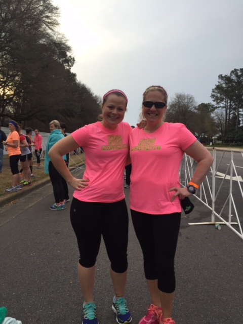 I ran the Wrightsville Beach Marathon as a three woman relay team on Sunday with Heather and her friend Lesley. In my mind, I decided I wanted to run my 5.5 mile leg of the race at a pace with a 10 in the front instead of an 11, the pace of my usual long training runs. Typing my pace in this blog feels more scary to me than telling y’all how much I weigh. Slower runners often feel self-conscious about their pace. It feels so personal. Given how last week went, when I just did not feel good on any run, I was worried that I would not be able to make my goal. Not that Heather or Lesley would have cared but I did. Every time I toe the line at a race, it has absolutely nothing to do with any other person at that race. It is about beating myself and about whether or not I can achieve my goals.