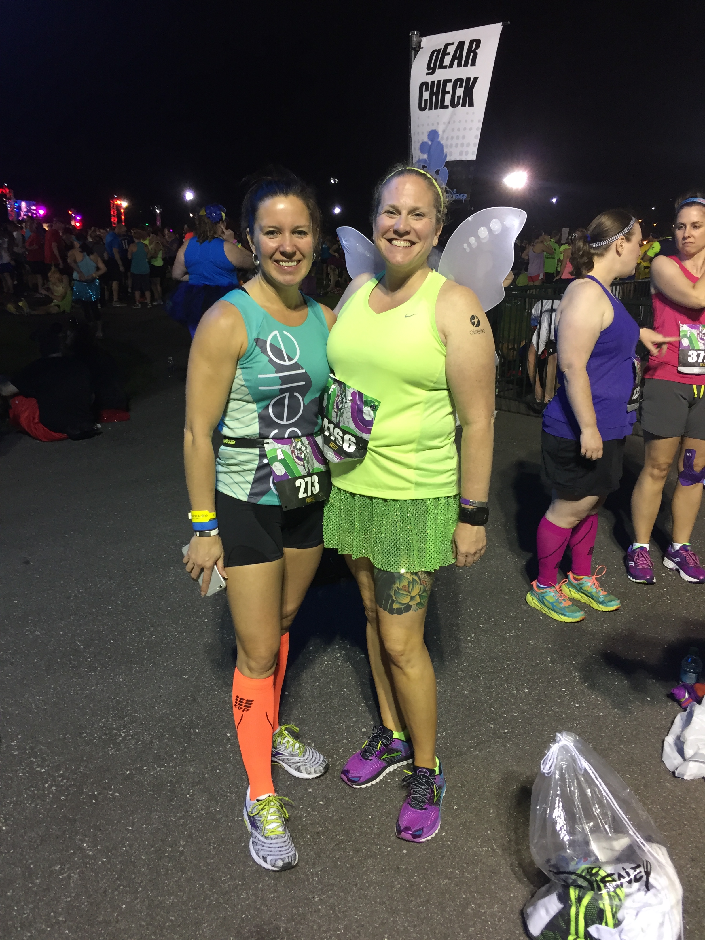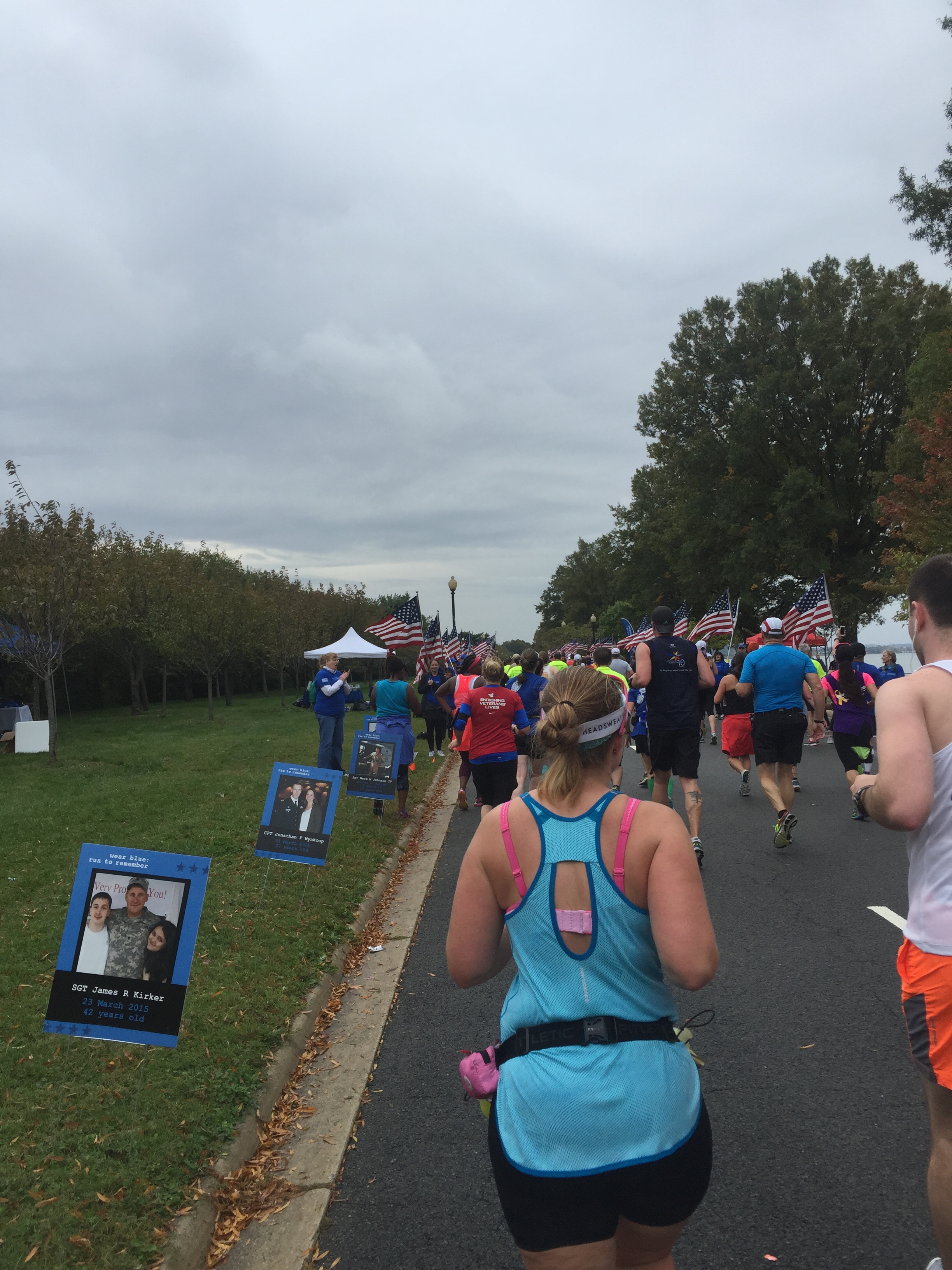 I want to take a minute to talk about how much having a friend jump in with you can really help. Jumping in had never occurred to me until I was running the Marine Corps Marathon. Heather had left me by the time I puked right before I started across the Bridge from Hell. I felt the worst I had ever felt in a race. I think if there had been a medical station on the bridge I would have quit. But there was no aid station, only misery. As I was coming down off the bridge, a sad song that reminds me of my mom came on my iPod and I just started to cry. I rounded the corner and there was the DC/VA/MD Volee. I spotted Emily and made a bee line to her for a big hug. Julie took one look at me and jumped in to run with me until I got to the thicker crowds around Crystal City so I wouldn’t be alone. I fully credit the team for getting me to mile 23 of that race. At mile 23 there was no quitting so it was just the boost I needed. Those are some Squad Goals, people, and one of the reasons I will always remain a member of this team for as long as they will have me.